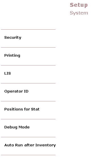 - Touch the System submenu. The System Setup screen displays: