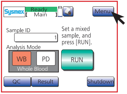 Step One: From the Sysmex pocH-100i Home screen press the "Menu" button.